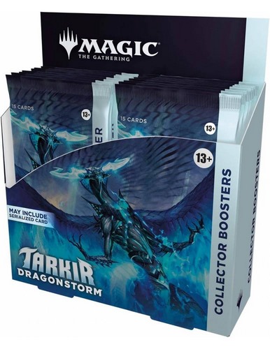 COMBATE DRAGONES CON MÁS DRAGONES: vuelve a Tarkir para un enfrentamiento épico entre clanes y dragones. Descubre qué clan encaja mejor con tu estilo de juego gracias a los arquetipos de tres colores y añade poder dracónico a tu colección • PUEDE CONTENER UNA CARTA SERIADA: los sobres de coleccionista son los únicos que pueden contener una carta de estrella principal seriada con arte alternativo exclusivo y un tratamiento foil de doble arcoíris limitada a 500 unidades • FOIL EXCLUSIVAS DE SOBRES DE COLECCIONISTA: es posible que en los sobres de coleccionista encuentres una carta exclusiva con un tratamiento foil especial que se usa por primera vez en Tarkir: tormenta dracónica EL BOTÍN DE UN DRAGÓN CON TESOROS DE TARKIR