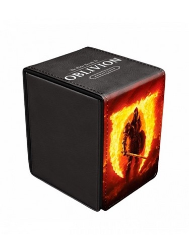Caja de mazo Alcove Flip 100+ – The Elder Scrolls IV: Oblivion – Ultra Pro. Caja de mazo con acabado en polipiel a todo color. Capacidad para 100 cartas tamaño estándar con doble funda. Cierre magnético fuerte y doble hendidura para acceso rápido. Ideal para torneos y transporte seguro del mazo.